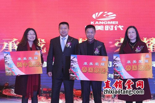 蒋总代表公司为获得旅游奖励的业务伙伴颁奖