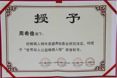 中脉周希俭荣获“世界华人公益楷模人物”称号
