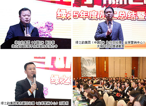 会议现场,绿之韵集团(中国区)常务副总经理(全球营销中心)刘维利,绿之韵集团(中国区)执行总经理、天城网总经理谌献军,绿之韵集团(中国区)副总裁·绿之韵国际商学院荣誉院长张力中相继就公司2015年业绩情况、企业战略、市场发展筹划、天城网市场目标等做战略规划。历史于时序更替中前行,梦想在砥砺奋进中实现。2016年,我们蓄势腾飞,我们踌躇满志!