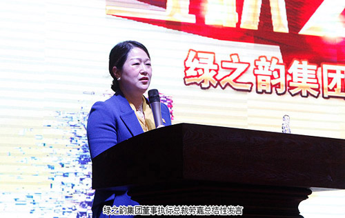 会议最大亮点当属表彰环节。2015年表彰大会共设置“季度星级服务明星奖”、“季度优秀服务集体奖”、“天城网年度新人奖、优秀员工、优秀管理者及优秀团队奖”、“最佳新人奖”、“优秀指导老师奖”、“绿之韵风范奖”、“市场先锋奖”、“优秀管理者奖”、“卓越团队奖”等多个奖项。荣誉,是对奋斗者的嘉奖,不屈的斗志印证在手中那一座座奖杯之中。荣誉证书和水晶奖杯记载着荣耀,镌刻着感动。绿之韵集团董事执行总裁劳嘉上台为获奖员工颁奖之后发表讲话,她向获奖的员工表示祝贺,向2015年所有努力的绿之韵人表示感谢,她鼓励所有绿之韵员工在新的一年里,团结拼搏,奋力开拓,在打造绿之韵世界品牌的新征程上,迈出更加坚实的步伐!
