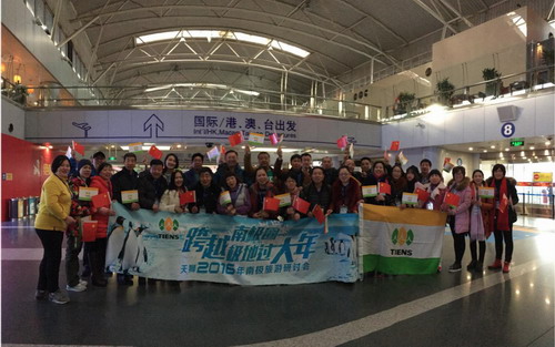 2016年的丙申新春,对于参加天狮集团“跨越南极圈,极地过大年”南极之行的30余名天狮精英来说,注定非同寻常,永生难忘。2016年2月3日,他们带着激动、带着兴奋、带着期盼,在北京开启为期17天的南极探秘之旅。天狮南极旅行团将途经荷兰阿姆斯特丹、阿根廷布宜诺斯艾利斯、乌斯怀亚,前往神秘的南极大陆,代表天狮全球4000万家庭的消费者和事业伙伴挑战自我,亲近自然,领略南极神秘而壮美的风光。据悉这是中国大健康产业企业首次组团赴南极开展高端旅游活动,也是中国公司组织自身人员赴南极旅游规模最大的一次。