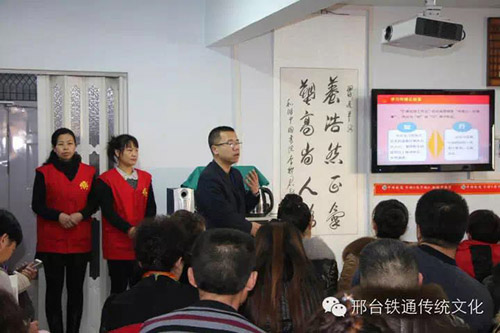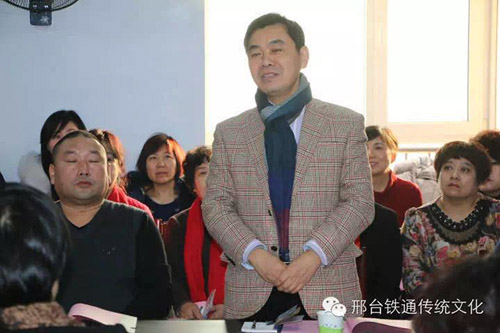 9:00,交流会正式开始,孙会喜主席首先致辞,他说:“非常高兴来到邢台铁通,和大家一起探讨、交流传统文化,希望大家珍惜这次交流学习的机会,向铁通公司学习,努力提高自己。”发言中,孙主席提到:“一个人只有正心,方能修身,只有播种善的种子,才会结出爱的果实,只要行走在爱与善的道路上,明确了方向,就能把事业做到最好。”他的发言得到了大家的认可与肯定。