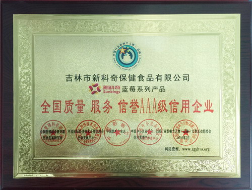 近日,“全国行业影响力人物(品牌)”大型活动组委会揭晓评选结果,吉林市新科奇保健食品有限公司(以下简称新科奇Sunkings)及其研发生产的蓝莓系列产品荣获“全国质量 服务 信誉 AAA级信用企业”“中国蓝莓市场领导品牌”“中国3·15消费者最信赖产品”三项大奖。