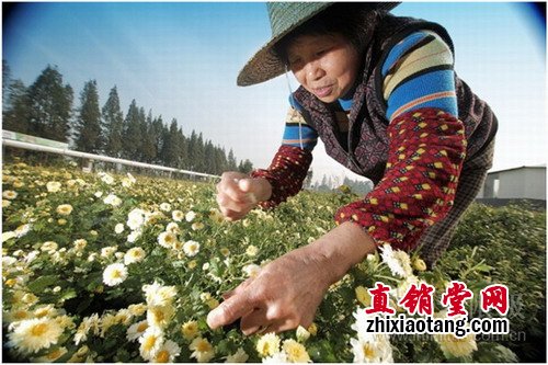 每到菊花盛开的时节,菊农们的工作可谓夜以继日。白天采,晚上头戴矿灯继续采。只见菊农们两手一齐采,先摘顶上盛开的花朵,再摘下面未开的骨朵,动作飞快,相当娴熟。