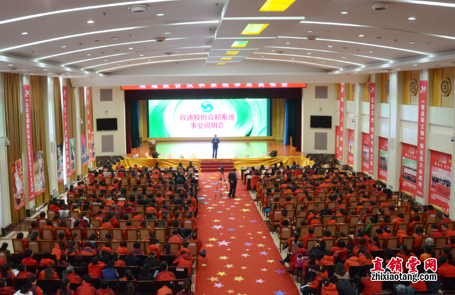 2月18—19日,双迪股份众和系统事业说明会在济南隆重召开。山东省政协原副主席、山东省健康长寿文化促进会会长王宗廉,中国保健协会荣誉理事长、双迪事业与珍奥公司创办人、双迪股份首席执行官陈玉松、董事长兼总裁潘晓非、副董事长兼执行总裁郑凤强、副总裁兼商学院常务副院长杨磊峰、山东省老龄工作委员会办公室原副主任、山东省健康长寿文化促进会副会长兼秘书长陈志军,山东省老年大学原校长、山东省健康长寿文化促进会副会长郑维勇,双迪股份众和系统总裁管庆磊等领导嘉宾,以及众和系统的600多位精英共同出席了系统启动说明会。