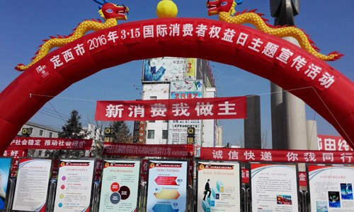 3月15日,甘肃分公司参加定西工商组织举办的3·15活动,并打出了”保护消费者合法权益是全社会的共同责任“的宣传标语。