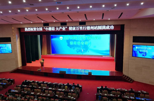 山东省德州市农业局蔬菜办主任田京江致欢迎辞。他表示,全国“小蘑菇 大产业”健康万里行活动来到山东省德州市,对推动山东省食用菌产业的发展将起到非常积极的作用。