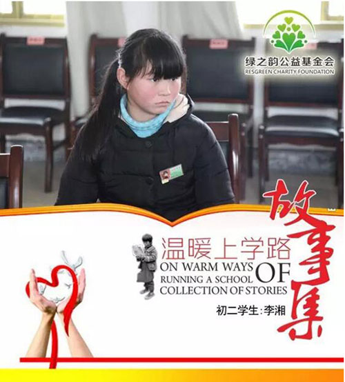 浏阳市小河乡小河初中初二学生。由于爷爷、奶奶年迈,平时多病,家里还有个弟弟在读小学三年级,父母亲靠养点羊种点田维持家用,用勤劳的双肩艰难支撑着苦难的家庭。李湘老实、不善于表达,除了上学读书外,她还要照看弟弟,并帮助家里做饭、收拾家务,农忙的时候帮忙播种、收割。生活上再怎么困难也都能撑得过去,李湘说,家里现在唯一的希望就寄托在她和弟弟身上,她一定会好好学习,将来考上好大学,找个好工作,让一家人过上好日子。