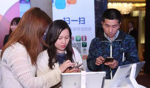 发布会现场,人们纷纷体验安利移动电商新玩法