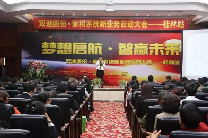 为了让一季度营销业绩再攀新高峰,3月26日,以“梦想启航,智赢未来”为主题的新业务启动大会,分别在桂林、成都两地同时召开。这是继本月的山西、昆明、大连、河池会议后,家和系统召开的又一次重要新业务启动大会。