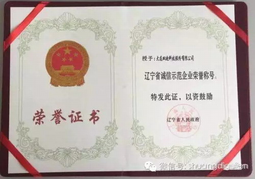双迪股份获评“第三届辽宁省诚信示范企业”
