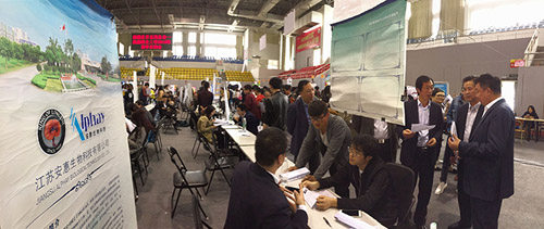 下午,陈惠董事长一行来到南通职业大学体育馆,实地察看了通商企业招聘的情况。
