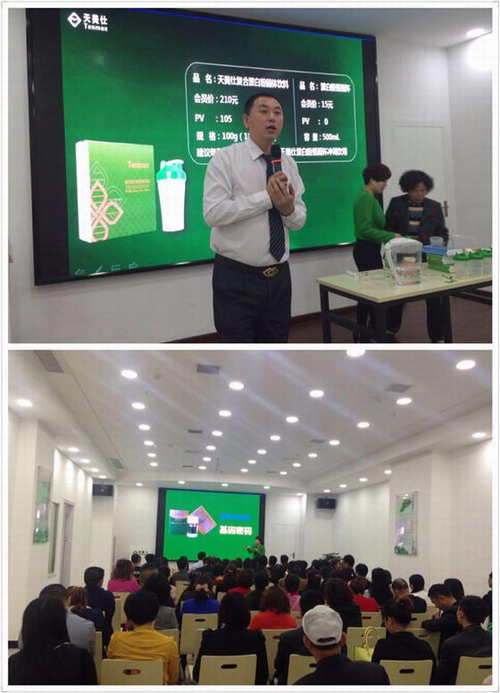 同样在荆门也是湖北省第一个天美仕专卖店开设之地,自专卖店开设以来门庭若市,最大利用率的使用专卖店将天美仕新型商业平台以及优质的产品得到更多的宣传。参会人数:140余人