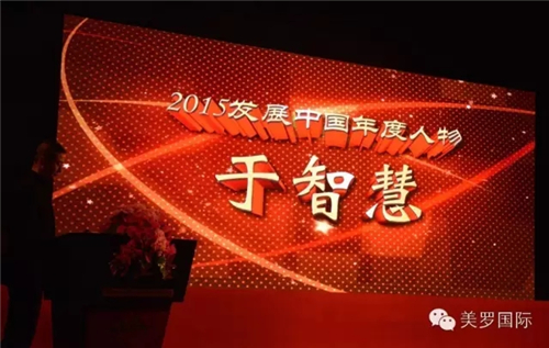 2016年4月23日,由国家发展改革委中国网举办的“首届中国新常态经济发展高层论坛暨2015发展中国年度人物盛典”在北京举行。美罗国际集团联合创始人、总裁;美罗汇联合创始人、董事长于智慧女士凭借在“发展、创新、责任、推动力”方面的出色表现,荣获2015“发展中国年度人物”。