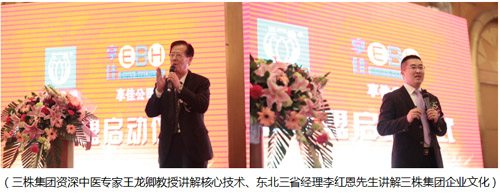 同时三株集团资深专家王龙卿教授对三株的核心技术和产品进行了详细的讲解,让与会人员充分了解三株的发展实力和方向。东北三省经理李红恩对三株企业文化做了深刻的解析,三株深厚的企业文化基础,强大的企业实力,感染了所有与会人员。依靠国家中医药发展的大趋势,三株的事业也将迎来事业发展的高峰。