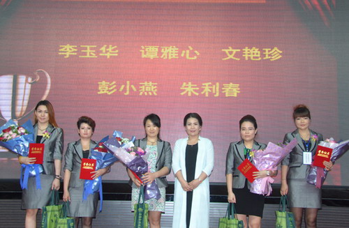 优秀店铺奖、爱心奉献奖、市场拓展奖、团队杰出领导奖等获奖者纷纷走上缤纷舞台,尊享荣誉与致敬、鲜花与掌声的回馈。颁奖合影后,众多家人掩饰不住内心的羡慕与喜悦,手捧鲜花和绶带跑上舞台,簇拥着他们心目中的强者、智者、胜者,有的将获奖者高高举起,惊艳全场。从今年开始,为了弘扬华林大爱、彰显华林责任,表彰那些默默无闻、热心公益、奉献爱心、传递正能量的事业伙伴,公司新设置了“爱心奉献奖”这一奖项。赵永进、王防修、胡俊华、高华、刘秀玲、曹丽、刘文芳、李丹、金莉莉等爱心使者以感恩之心、博爱之心赢得家人的尊重和内心的安宁,获得公司的表彰。