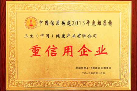 近日,在“中国信用4·16高峰论坛暨第十二届全国信用体系建设经验交流年会”上,三生(中国)健康产业有限公司荣获“重信用企业”称号。