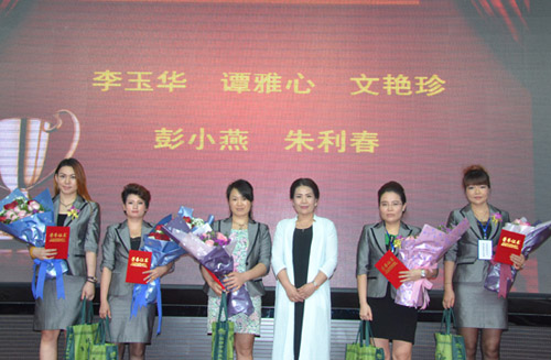 优秀店铺奖、爱心奉献奖、市场拓展奖、团队杰出领导奖等获奖者纷纷走上缤纷舞台,尊享荣誉与致敬、鲜花与掌声的回馈。颁奖合影后,众多家人掩饰不住内心的羡慕与喜悦,手捧鲜花和绶带跑上舞台,簇拥着他们心目中的强者、智者、胜者,有的将获奖者高高举起,惊艳全场。从今年开始,为了弘扬华林大爱、彰显华林责任,表彰那些默默无闻、热心公益、奉献爱心、传递正能量的事业伙伴,公司新设置了“爱心奉献奖”这一奖项。赵永进、王防修、胡俊华、高华、刘秀玲、曹丽、刘文芳、李丹、金莉莉等爱心使者以感恩之心、博爱之心赢得家人的尊重和内心的安宁,获得公司的表彰。