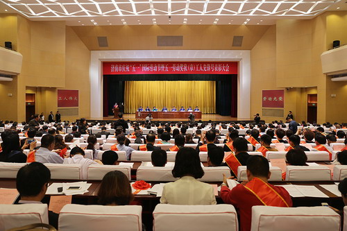 王文涛代表市委、市政府,向全市广大职工和全体劳动者致以节日的问候,向受到表彰的先进集体和先进个人表示热烈的祝贺,号召全市广大干部职工和全体劳动者弘扬劳模精神,锐意改革,攻坚克难,敢于担当,争创一流,为“打造四个中心、建设现代泉城”做出新的贡献。