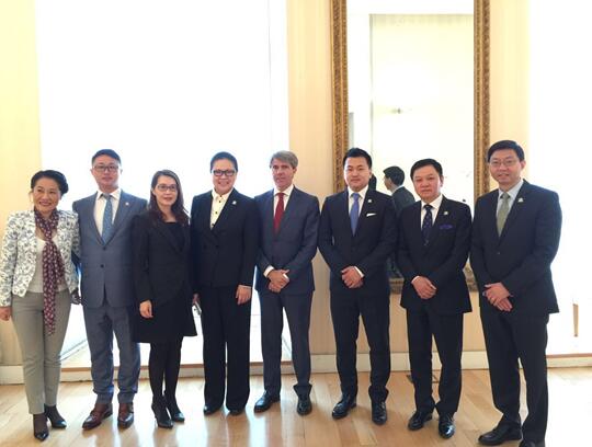 加尔西亚副主席(右四)与天狮集团董事李宗民先生(右三)、天狮集团副总裁刘天傲女士(左四)等一行高管亲切合影