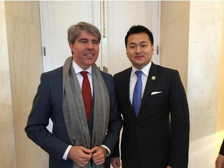 连日来,纪念中西建交42周年的“Hola 西班牙 Hola 天狮—— 天狮集团21周年庆西班牙站”系列文化交流活动,得到了西班牙各界的广泛关注,西班牙副首相德圣玛利亚、马德里市市长卡梅纳等西班牙政要官员纷纷会见天狮高管,对本次活动给予高度重视与大力支持。5月6日上午,西班牙马德里自治区副主席安杰尔•卡里多•加尔西亚(Angel Garrido Garcia)亲切会见天狮集团李金元董事长长子、集团董事李宗民先生及天狮集团高管团队一行,称赞天狮举办中西建交42周年以来最大规模的民间文化交流盛会,创造了和平与友谊的奇迹。