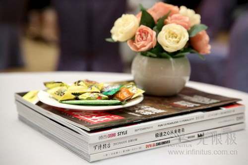 热身结束,坐回座位。每张小圆桌上都有特别的布置——鲜花、糖果以及……一叠杂志!为什么会有杂志呢?
