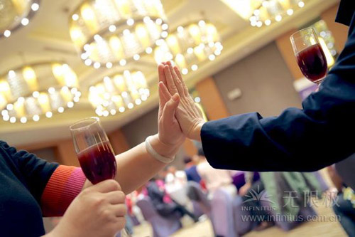 借着美酒,大家来做个热身游戏。音乐响起后,看看谁碰杯、击掌的人数最多。其实,从某种程度看,这也是行动力的一种表现呢。