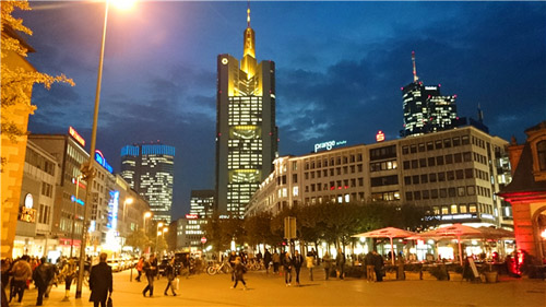 窗外美丽怡人的法兰克福夜景,纯正的德国啤酒,动人的音乐,繁华的街道巷尾,令人迷醉的灯光倒映着这即将沉睡的黑夜。