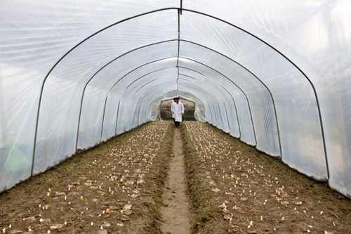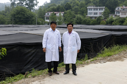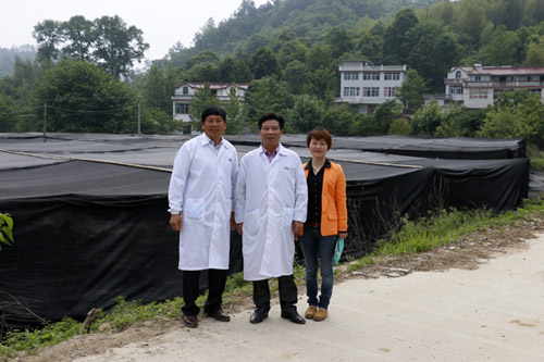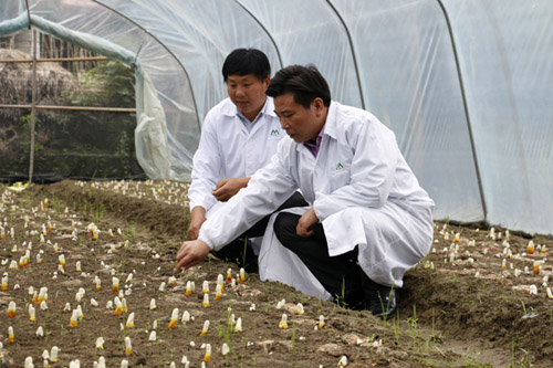 5月14日,余春富董事长前往大别山,考察斑竹园灵芝基地和吴家店光伏配套实验基地,基地负责人李文海详细报告了目前大别山区气温情况,正值菌棒下地栽培时节。前期提前栽培的一个试验性大棚已发芽成长。
