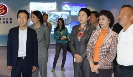 走进银色世纪健康产业园,郭爱玲一行首先参观了海洋生物科技馆。在科技馆内,邹圣灿简要介绍了作为涉蓝国家级高新技术企业的发展历程、科研合作、公益事业、科研产品以及丰厚的合作平台。郭爱玲一行不断驻足观摩,她表示海洋生物是一个具有广阔开发潜力的领域,银色世纪转化海洋生物高科技成果,助力发展蓝色经济是非常值得赞扬的。