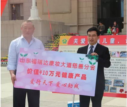 此次慈善捐赠活动,福瑞达康妆大道慈善分会向烟台市芝罘区残疾人综合服务中心捐赠了价值10万元的健康产品。活动现场,福瑞达康妆大道副总裁彭辉先生等一行人还参观了芝罘区残疾人综合服务中心,并亲身了解孩子们在这的生活条件与情况。彭总表示: “福瑞达康妆大道在注重企业发展的同时,更加注重能为社会办点实实在在的事。我们将以本次活动为契机,建立长期有效的慈善救助机制。同时,我们也希望与大家共同努力,为助残、为社会公益事业贡献出应有的力量。”