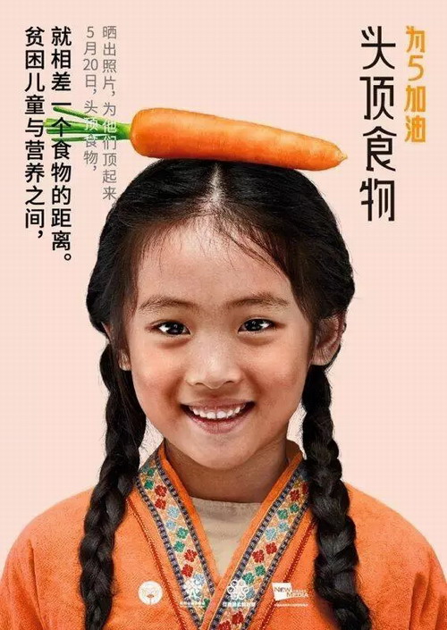 在她的生日即将到来之时,她又一次发起一项爱心行动,号召人们参与#头顶食物、为5加油#,用行动去缩短贫困儿童与营养之间的距离,为孩子们带来健康改善,这是她的生日心愿,让我们一起来帮她实现。