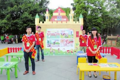 在舞台一旁,安利志愿者们搭起了安利特教模拟城市游戏塔,现场多名残疾儿童在亲人的陪同下游戏。据安利南充分公司工作人员李素兰介绍,该游戏分为厨房、医院、警察局、超市四个板块,通过角色扮演和游戏的方式,真实再现生活中场景。每个板块都设置了不同的模拟游戏,并通过安利志愿者一对一陪同孩子在模拟场景中互动交流,手把手教给孩子们各种基本生活技能,让孩子们在轻松有趣的环境下掌握生活知识。