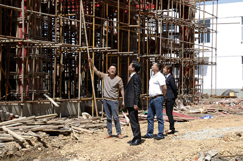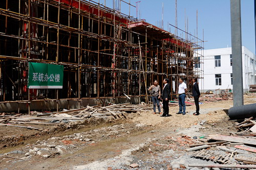 5月16日,公司董事长余春富视察六安总部工程,要求施工单位尽快完成建设工程,为6月份国际会议中心、系统办公楼及公寓楼的装修施工创造条件。
