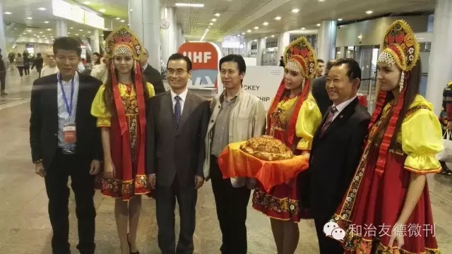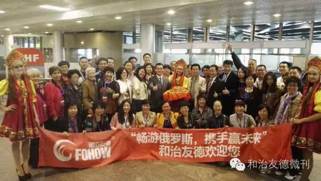 在穿过人山人海的入境口之后,只见大家加快了脚步,不约而同朝着一个方向飞奔而去,没错!正是韩金明董事长携FOHOW海外工作人员用俄罗斯特有贵宾礼仪方式亲自迎接中国嘉宾的到来,韩董事长与大家亲切握手,每位嘉宾争相与韩董合影留念。