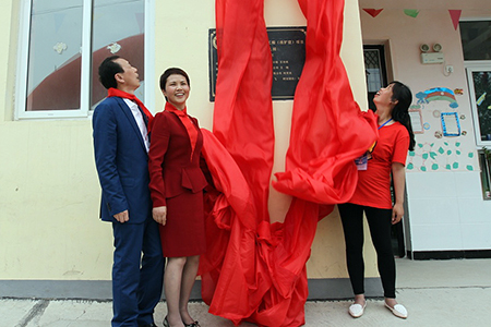 王梅女士和王颖先生为希望小学揭牌