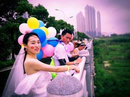 300多位新娘为爱奔跑 安利520上演婚纱跑步