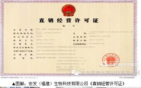 近日,我司接商务部通知,安发(福建)生物科技有限公司正式获得《直销经营许可证》,获准开展直销业务。