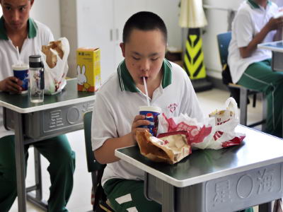 孩子们开心地吃午餐