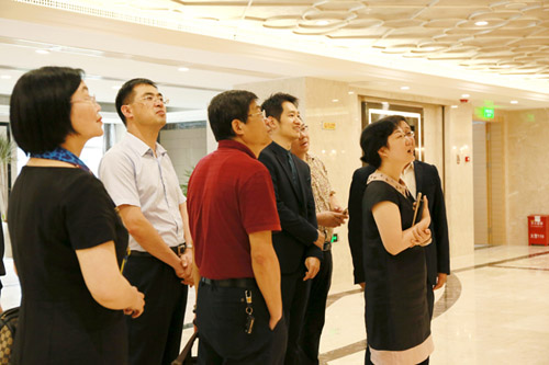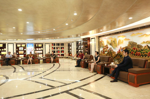 来宾们在李冠华总裁的陪同下参观了气势磅礴的金日全球会员服务中心。李总裁首先对厦门市侨商会领导、湖里区有关领导一行的来访表示欢迎,并感谢他们对金日集团的关心和支持。