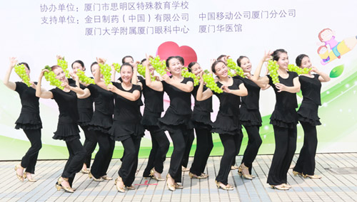 活动现场,厦门老年大学金日艺术团为大家献上了形式多样、精彩纷呈的表演。新疆舞蹈《丰收时节》的金日舞者们伴着欢快的音乐,舞步随阳光跳跃、旋转,脸上洋溢着开心与满足的笑容。她们舞动爱心、舞动奇迹。金日时装团的团员们一个个身着时尚的军衣,精神抖擞地带来了《我是一个兵》的精彩演出,展现了老年人的新潮风貌。
