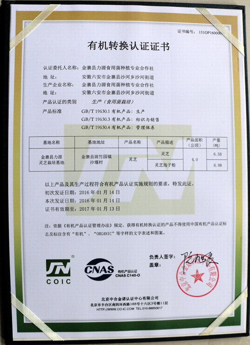 该项证书的获得,标志着康美来公司破壁灵芝孢子粉产品品质的可靠性,公司将继续严格按照有机灵芝种植、生产和管理要求,进一步提升大别山有机灵芝品质,给消费者带来更加安全、放心、健康的有机产品。