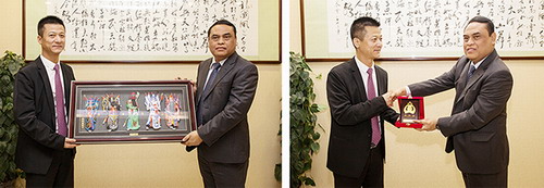 束昱辉董事长与夏鲁丁上将互赠礼物