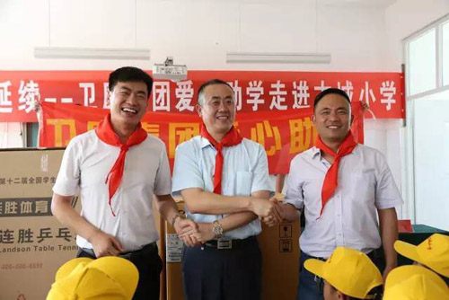 在观看了卫康孝爱古城小学的少先队员宣誓仪式后,卫康为卫康孝爱古城小学捐赠了一台集打印、扫描与复印于一体的打印机与乒乓球台等学校急需物资,为学校营造了一个健康的学习环境。祝宝松局长与王玉平书记共同见证了这一爱心时刻。