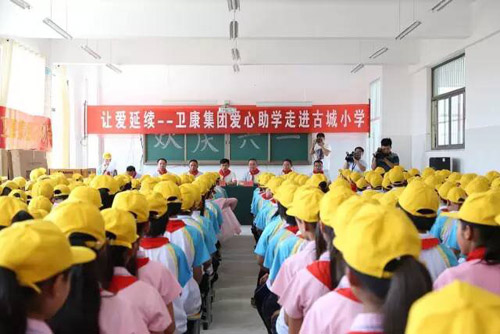 同一天,卫康带着对孩子们深沉的爱走进了临沂市高新区涧头小学,为贫困学生送上助学金,激励他们努力学习、快乐成长。