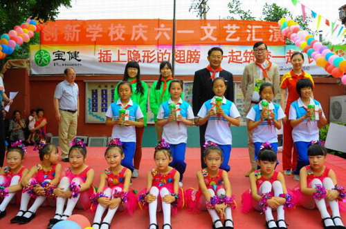 6月1日,宝健百所希望小学健康公益行活动启动仪式在北京市大兴区创新学校举行。宝健(中国)有限公司总裁李道先生 、沛恩集团总经理李宇杰、世界著名击剑运动员倪红以及希望学校师生共约1200人出席该活动。本次活动还得到了北京经济技术开发区宣传部及企服局的关注与支持。