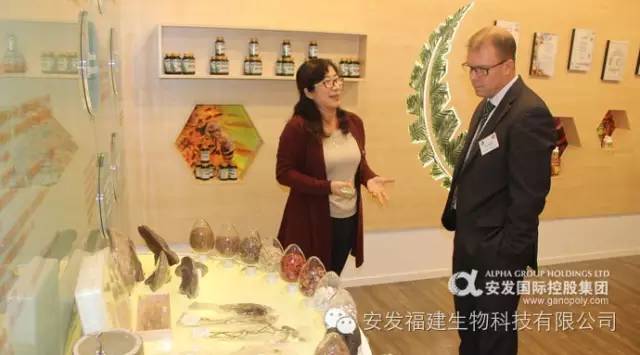 ▲ 图解:安发健康顾问Peter 杨医生在向客人介绍安发天然原材料