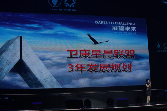 “无规矩不成方圆”,而一个有发展战略规划的系统是充满生命力和强大竞争力的系统,战略规划将在在行动中扮演冲锋号的角色,将各方力量无形地凝聚。大会现场,卫康星晨联盟执行总裁张海波女士讲解卫康星晨联盟的战略规划和全国布局。在三年内,做到百亿销售额;培养1000名专业业务推广及服务人员;建立6个教育培训中心;将营销网络扩展到世界10个国家和地区;将介入更多的业态,包括酒店、传媒、金融、教育;继续推动公益事业的发展,让卫康星晨联盟的百万会员都参与到百万家庭无癌症的公益活动中。