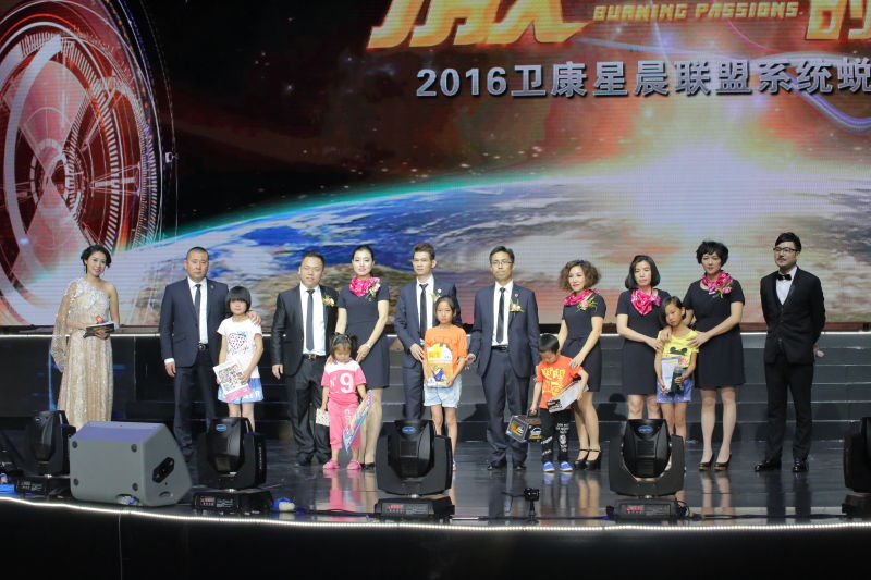 爱,让人重新思考生命的意义,爱,让人更加坚定自己的责任。这个世界除了爱,一切都是包袱。卫康星晨联盟奔跑在梦想的路上,与爱同行。在卫康星晨联盟创始人林俊先生和蔡尚芙先生的带领下,卫康星晨联盟启动助力儿童计划,2016资助百名儿童,两所希望小学落地。“愿天下人生命因我而不同”是卫康生物集团大爱精神的核心,卫康星晨联盟将把这种大爱精神传递给更多的人,把“百万家庭无癌症”公益活动传遍神州大地,让更多的家庭都远离癌症。燃烧梦想,将公益进行到底!在今天大会的现场,受捐助儿童也来到,感谢叔叔阿姨们的爱心捐助。