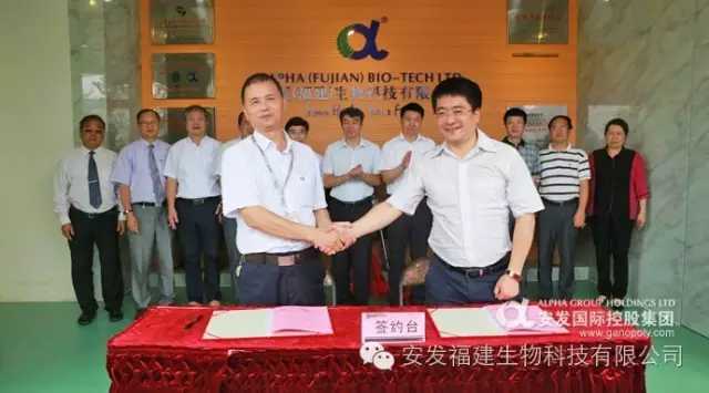 之后,游建胜副厅长、陈中平教授、崔国辉副市长、高益槐教授,以及宁德师范学院魏远竹副院长、宁德市人力资源与社会保障局陈幸局长、宁德市科学技术局陈茂榕局长、宁德市科协张铭华主席、东侨经济技术开发区党工委蔡梅生书记、管委会陈旺玉主任、厦门大学医学院齐忠权副院长等11人上台共同见证《校企共建国家级科研平台和博士后工作站合作协议书》签约仪式。仪式上,安发(福建)生物科技有限公司黎锦祥副总裁受出差在外的高炜总裁的委托,与浙江大学刘雪松教授代表校企双方签约。